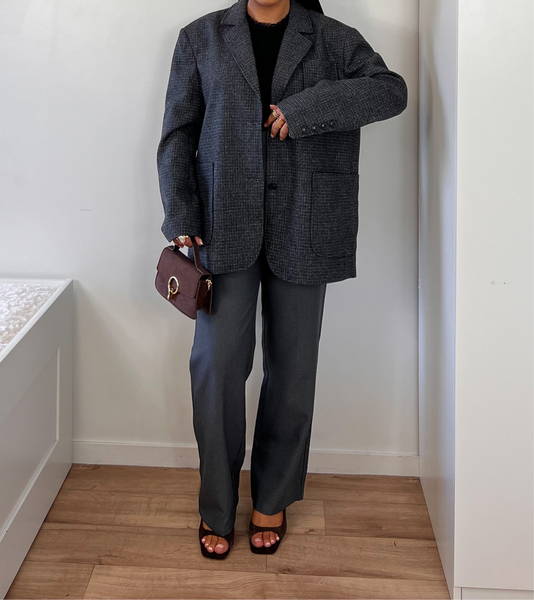 Blazer manteau élégant en laine mélangée, parfait pour la mi-saison et l’hiver doux. Confectionné avec 30% de laine et 70% de polyester, il allie chaleur, confort et durabilité. Sa coupe oversize et sa doublure intégrale offrent une silhouette chic et moderne tout en restant agréable à porter au quotidien.