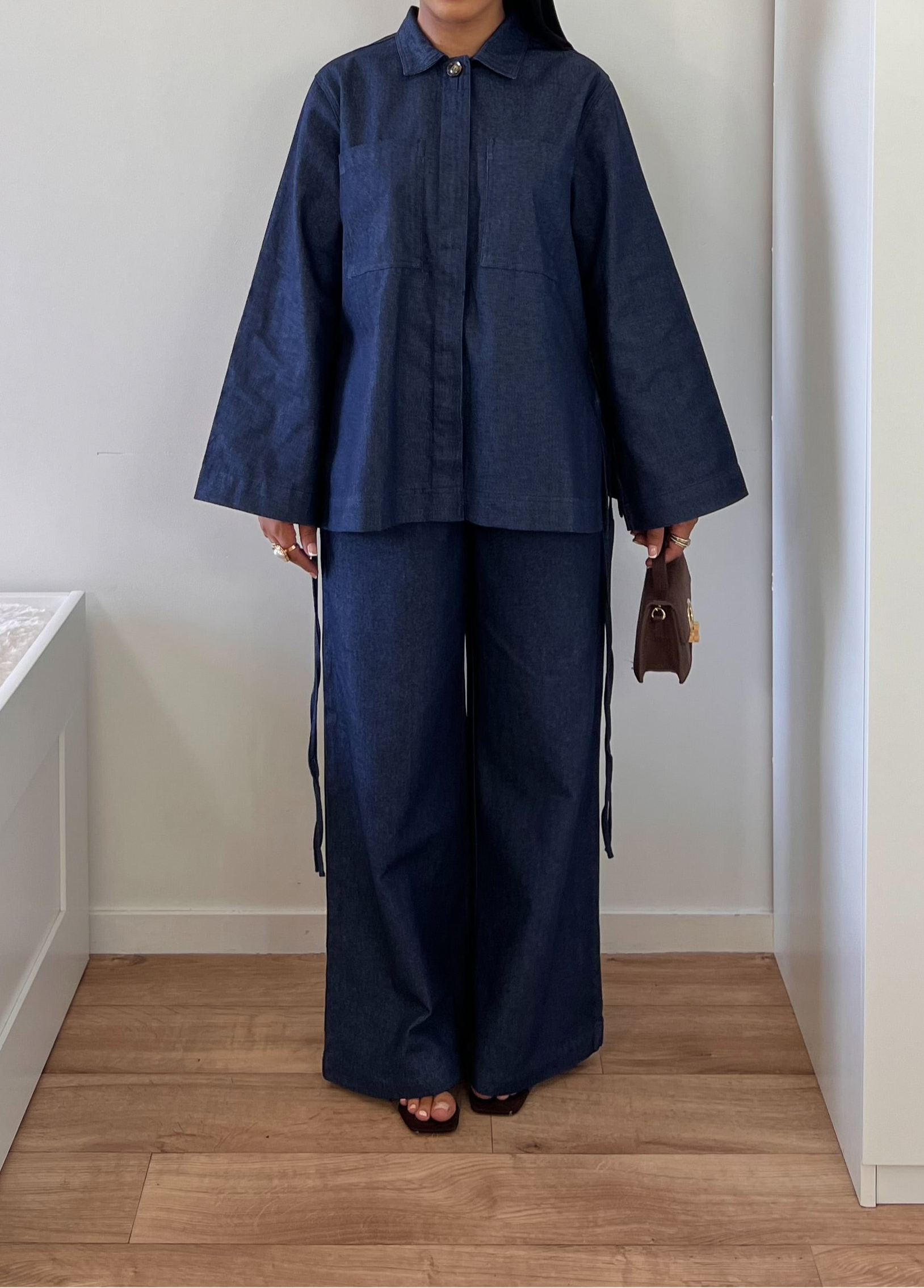 Ce vêtement est confectionné dans un jean foncé de qualité. Comme tous les tissus fortement teintés, il peut dégorger légèrement lors des premiers contacts ou lavages.