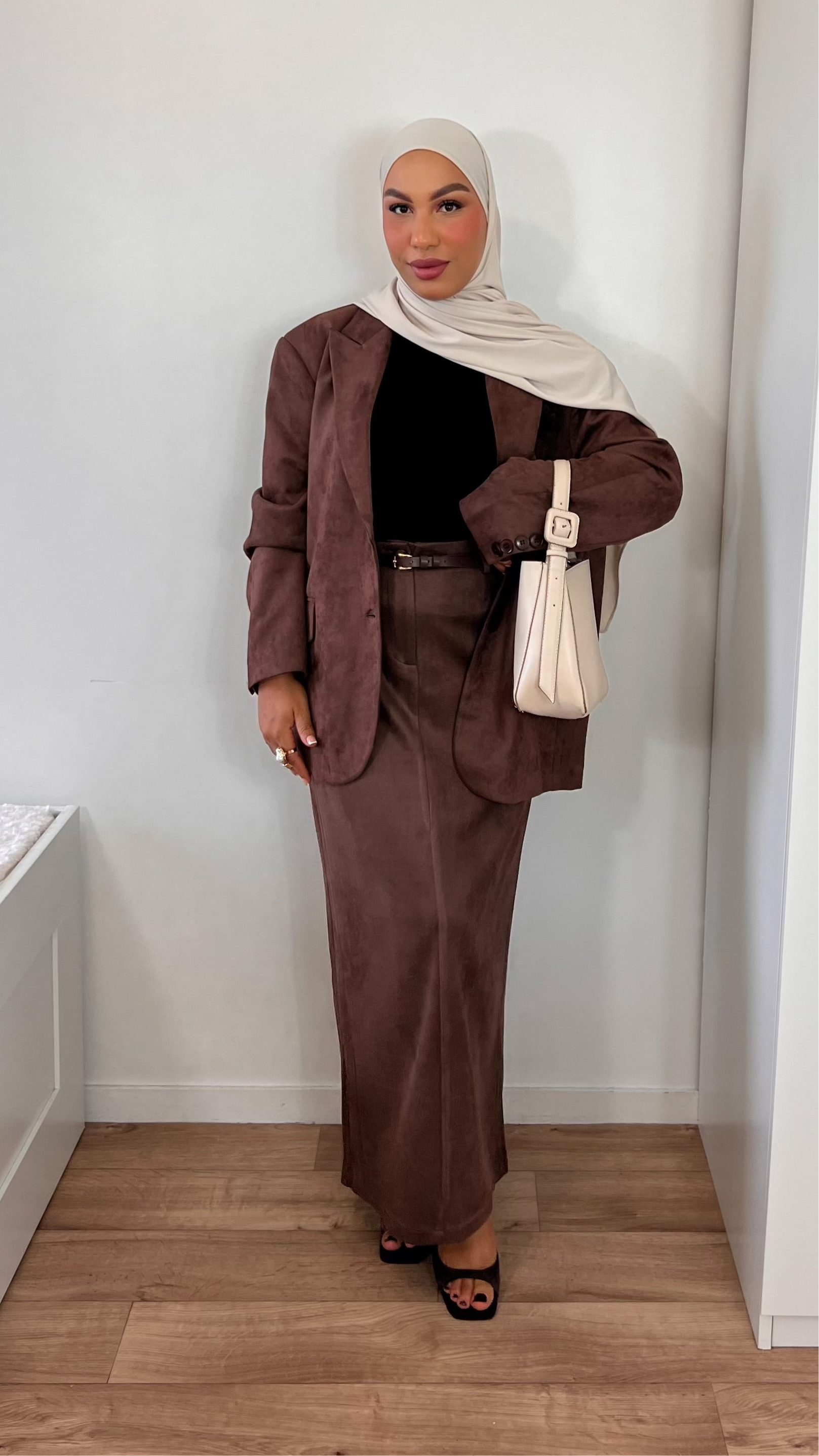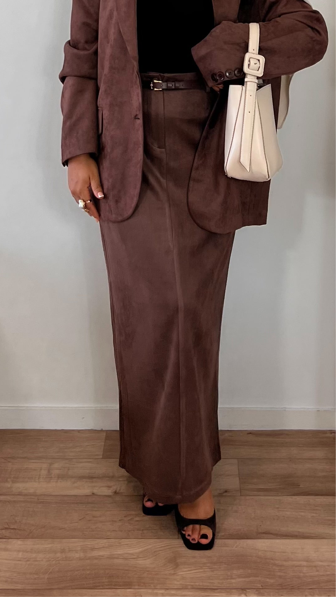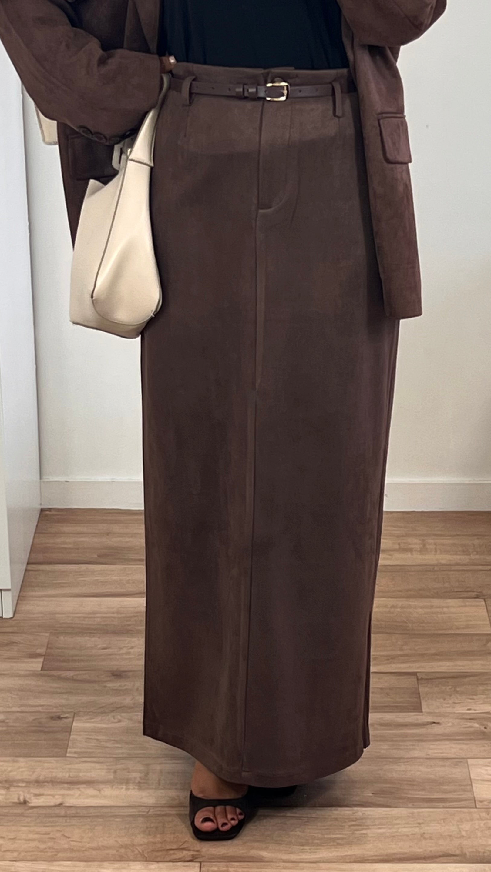 Jupe longue droite – Élégance & douceur effet daim