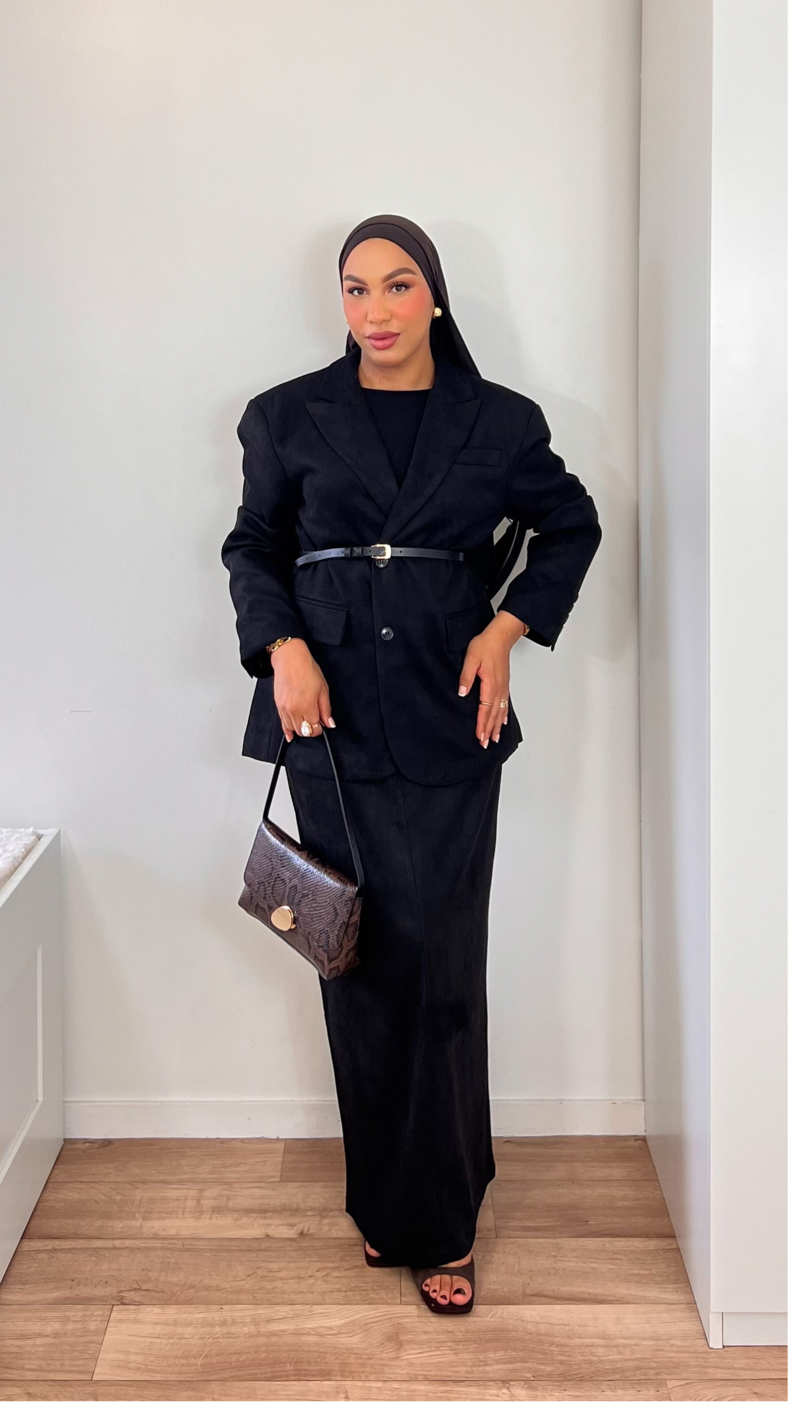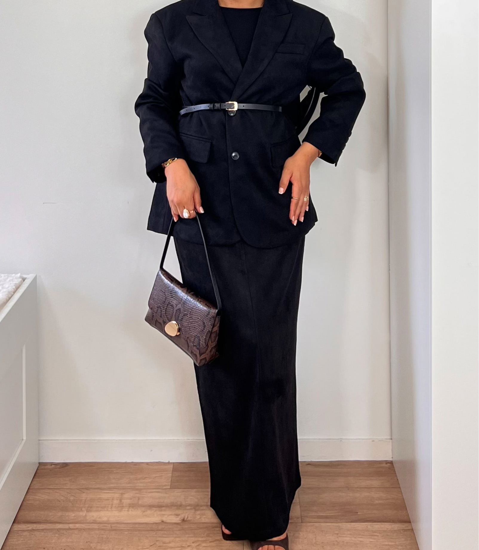 Confectionnée dans un tissu effet daim de qualité premium, elle offre un tombé parfait, une texture douce et un confort optimal au quotidien.