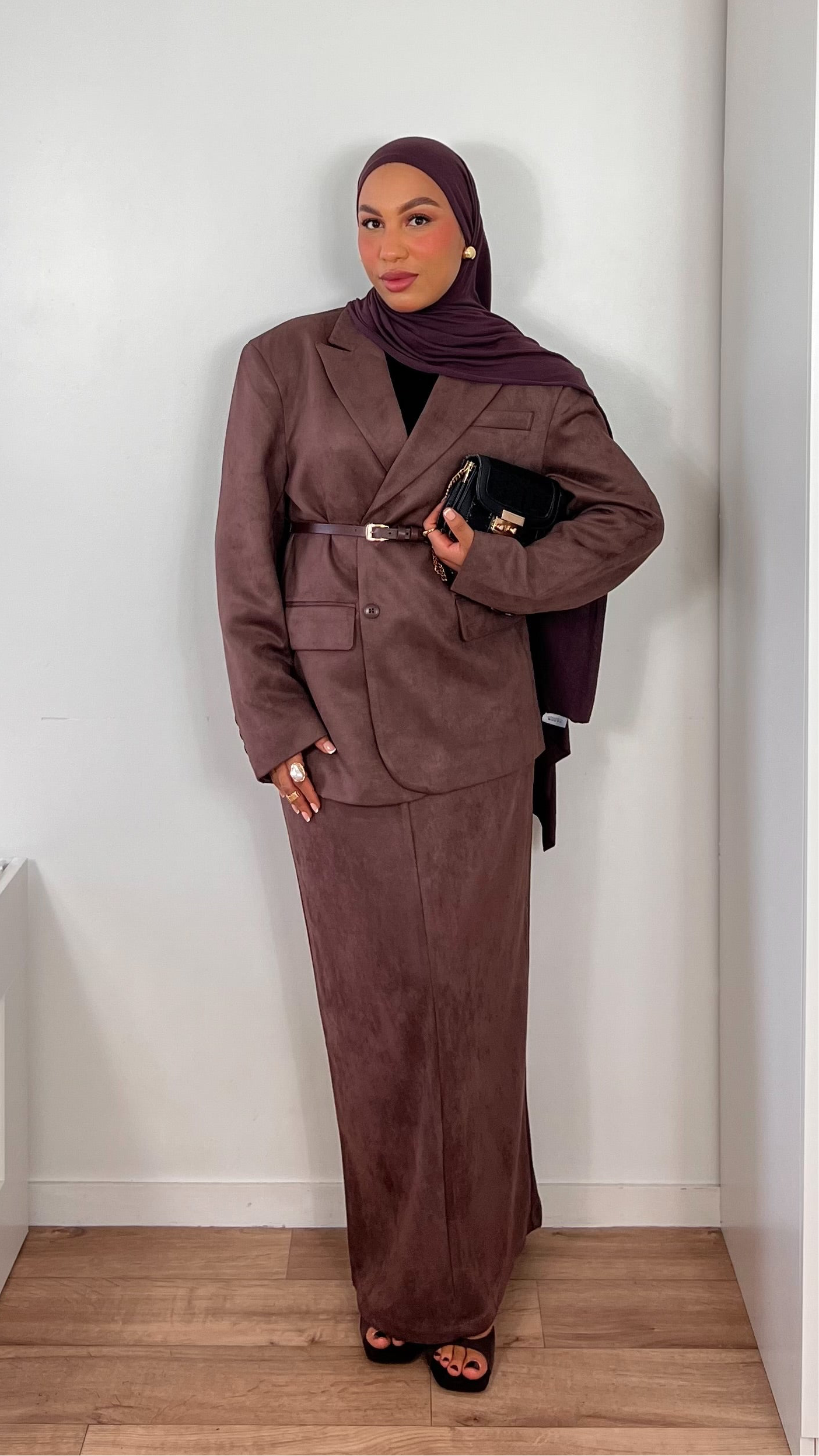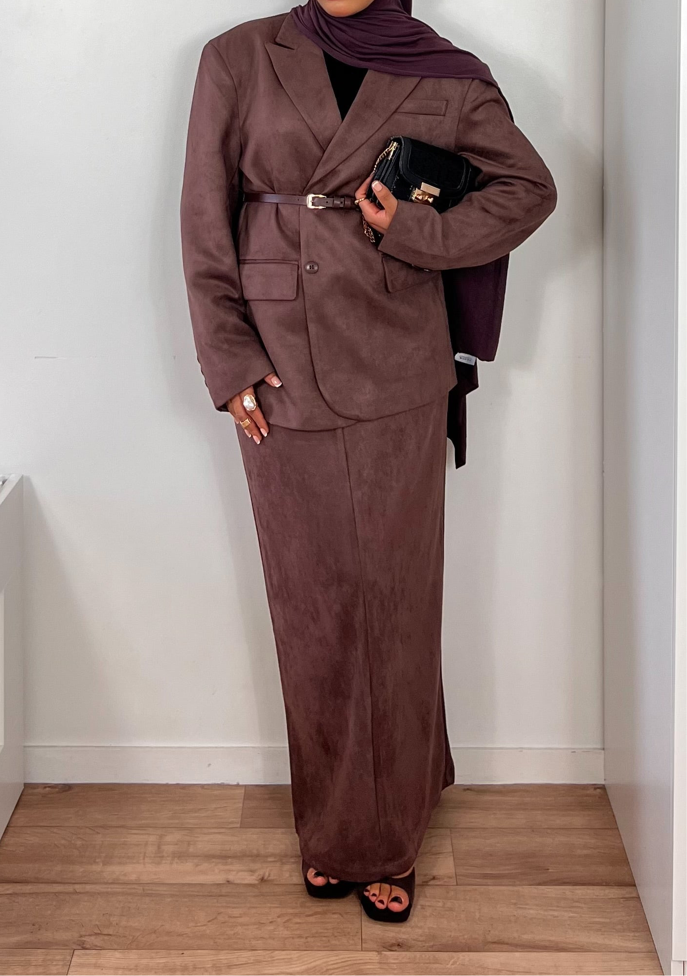 Confectionnée dans un tissu effet daim de qualité premium, elle offre un tombé parfait, une texture douce et un confort optimal au quotidien.