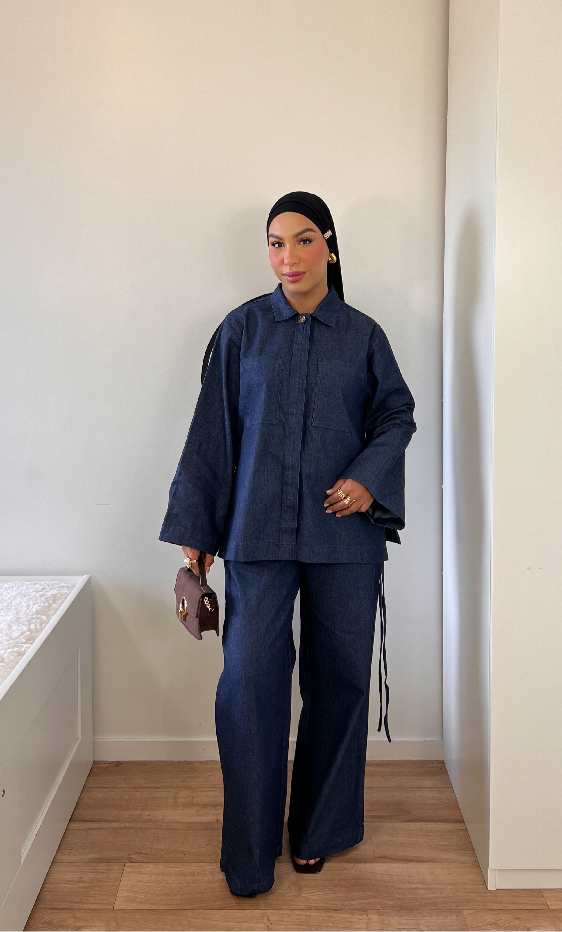 Ce vêtement est confectionné dans un jean foncé de qualité. Comme tous les tissus fortement teintés, il peut dégorger légèrement lors des premiers contacts ou lavages.